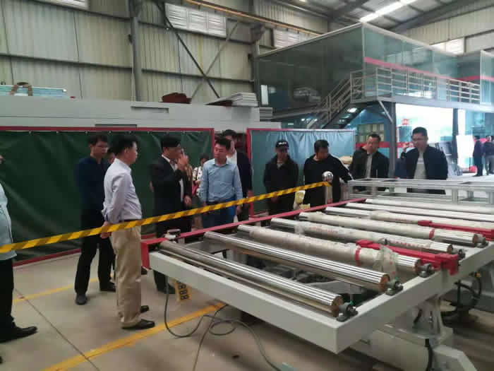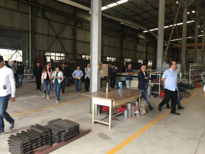 考察團(tuán)隊(duì)走進(jìn)園區(qū)的泉州富橋機(jī)械有限公司,劉總熱情地迎接客人參觀車間。公司主要生產(chǎn)自動(dòng)翻板設(shè)備、高效自動(dòng)補(bǔ)膠設(shè)備、自動(dòng)補(bǔ)膠烘干設(shè)備、花崗石條板火燒機(jī)、修邊剪切、開(kāi)槽等特殊機(jī)械產(chǎn)品。